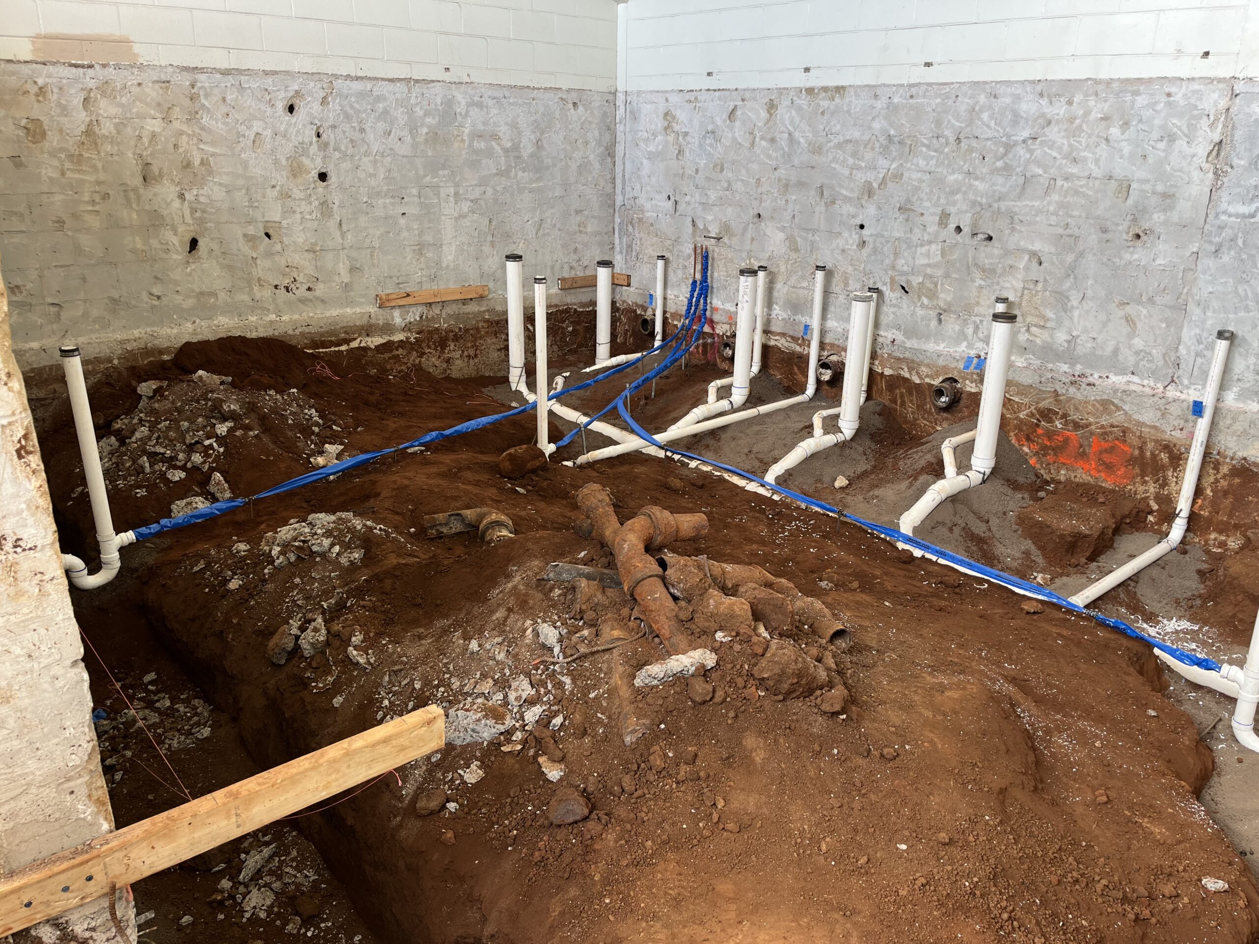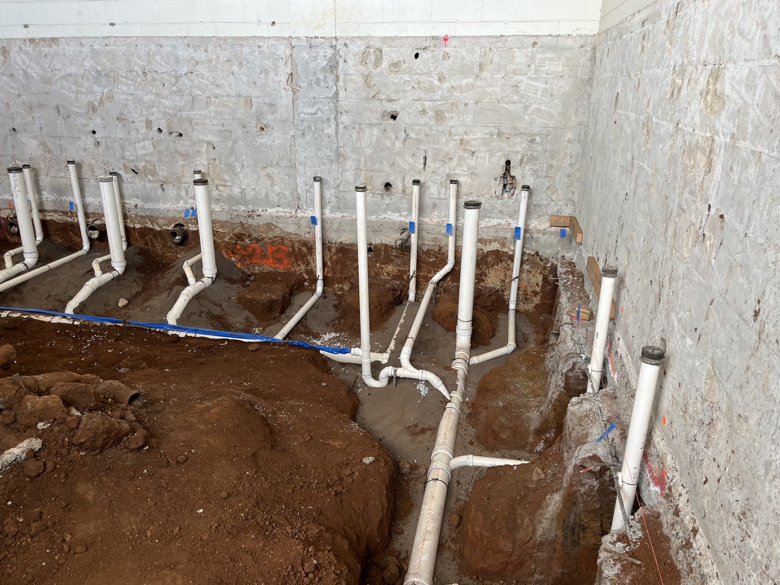 Our scope of work focuses on the complete overhaul of plumbing systems serving these support spaces. This includes installation of new underground and above-ground piping systems, upgraded plumbing fixtures, and high-efficiency water heating equipment designed to meet current performance standards and anticipated demand.